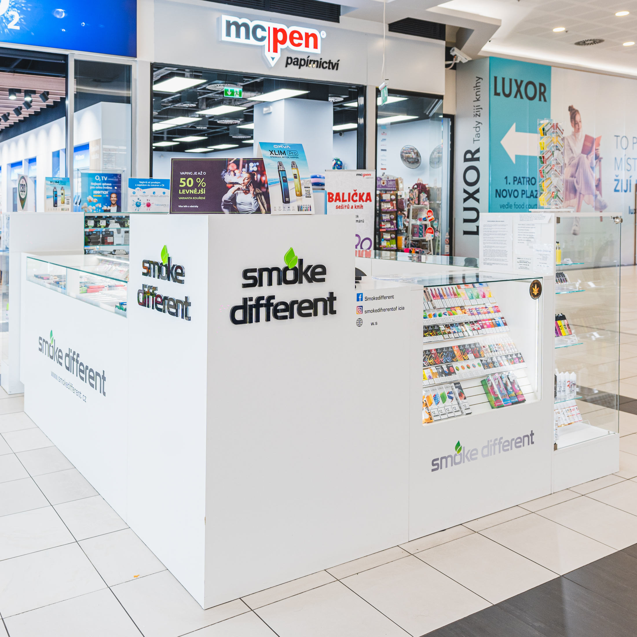 PRODEJNÍ STÁNEK SMOKE DIFFERENT Prodej kvalitních elektronických cigaret, e-liquidů a příslušenství k elektronickým cigaretám od renomovaných výrobců Joyetech, Microcig, Liqua, Dekang a dalších. V nabídce máme pouze kvalitní a prověřené originální elektronické cigarety které svými vlastnostmi uspokojí jak úplné začátečníky, tak i zkušené uživatele. Rozšířený sortiment prodeje TISKNU LEVNĚ Na tomto prodejním stánku můžete zakoupit náhradní náplně do tiskáren inkoustových, nebo tonery a barvy do tiskáren laserových.